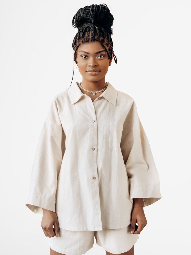 Flared Cotton Button Down Shirt